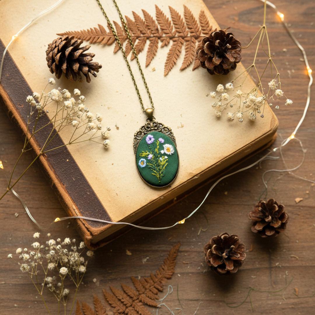 Oryginalna, haftowana biżuteria jest cudownym uzupełnieniem stylizacji oraz świetnym pomysłem na wyjątkowy i niepowtarzalny prezent dla osoby ceniącej naturę, spokój oraz harmonię.