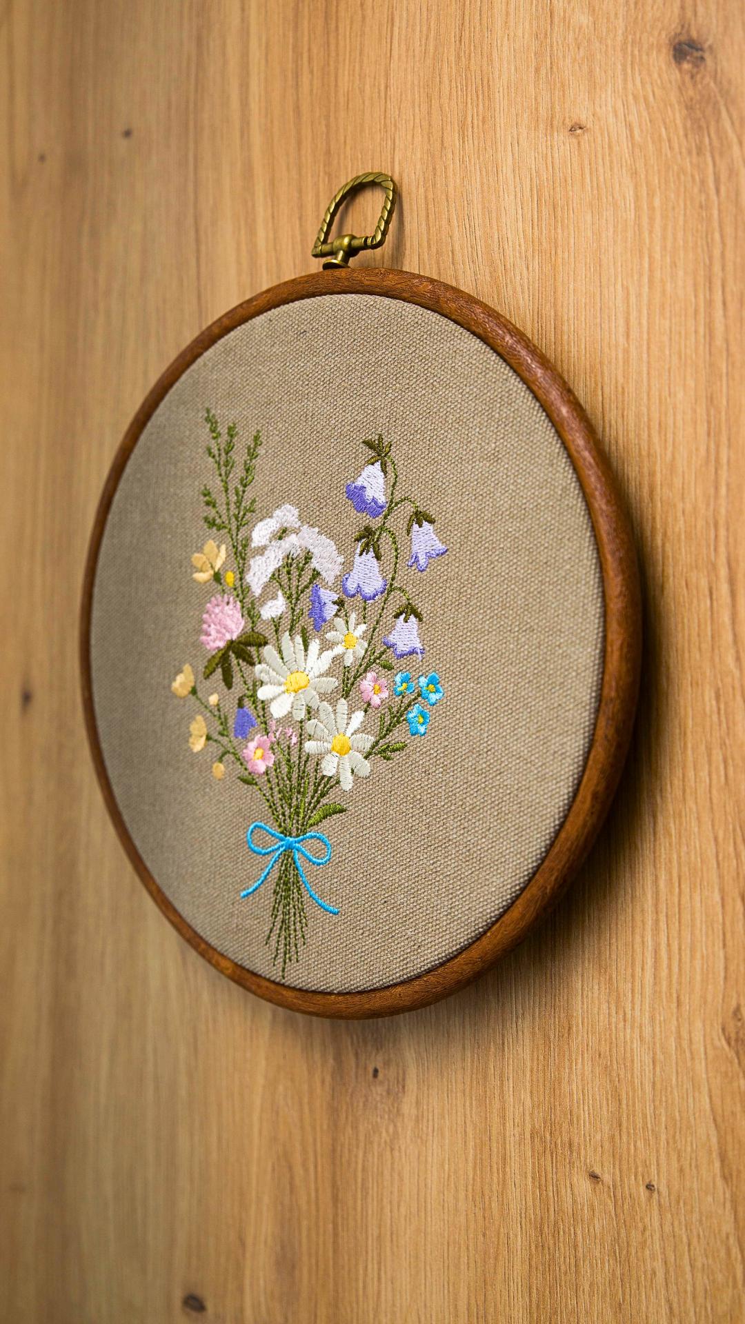 Bukiet kwiatów Klara – haft w tamborku 20 cm