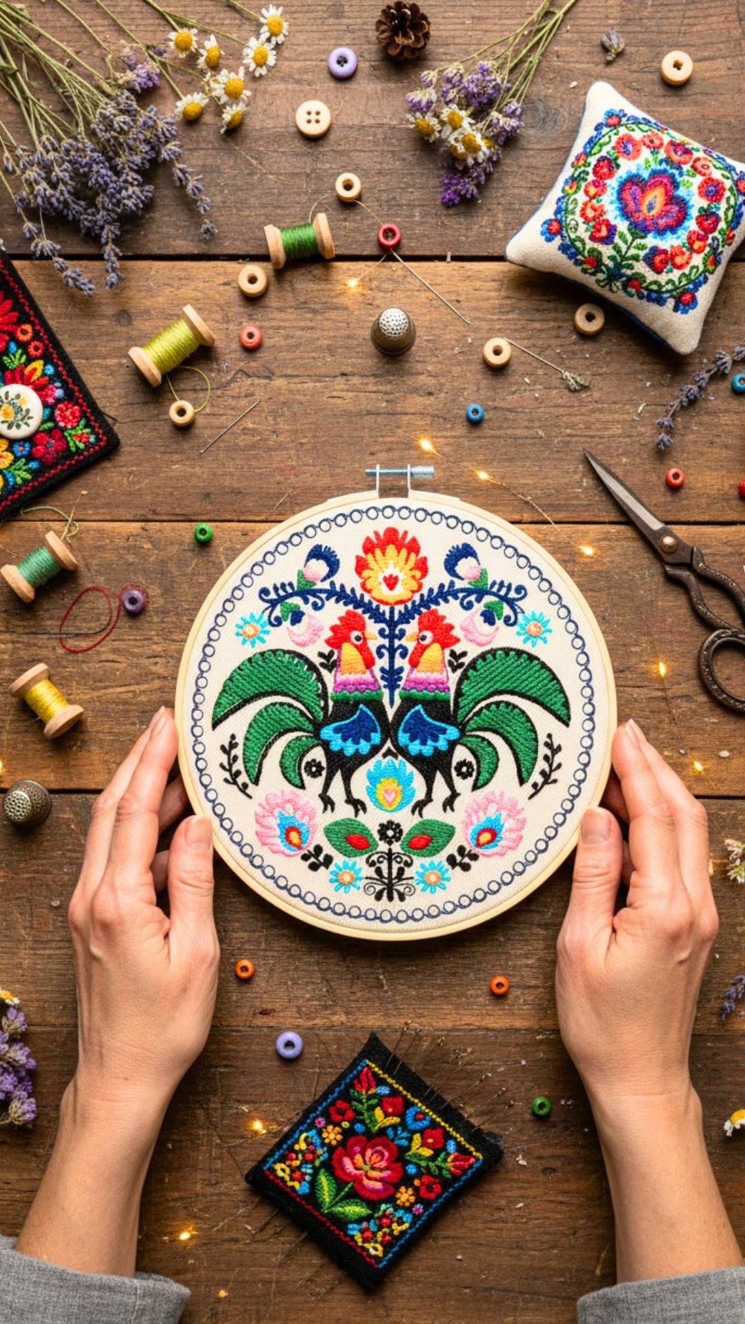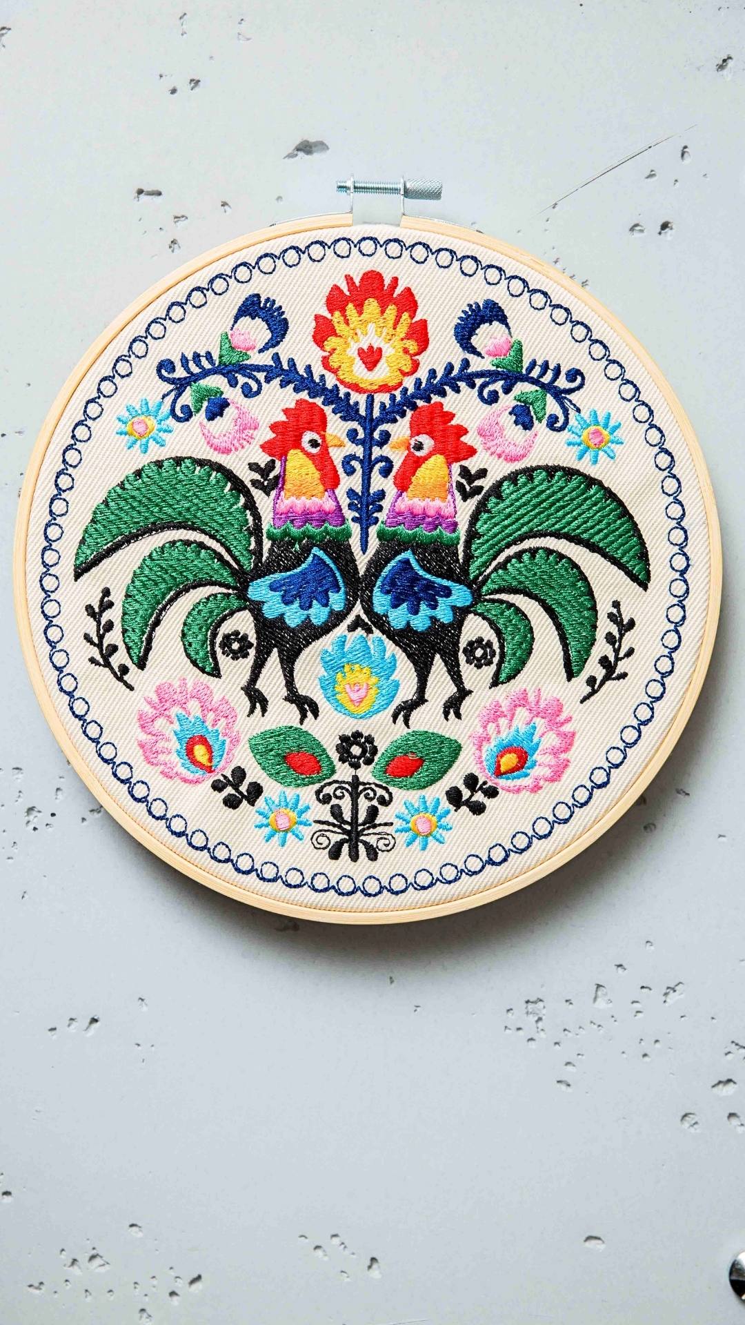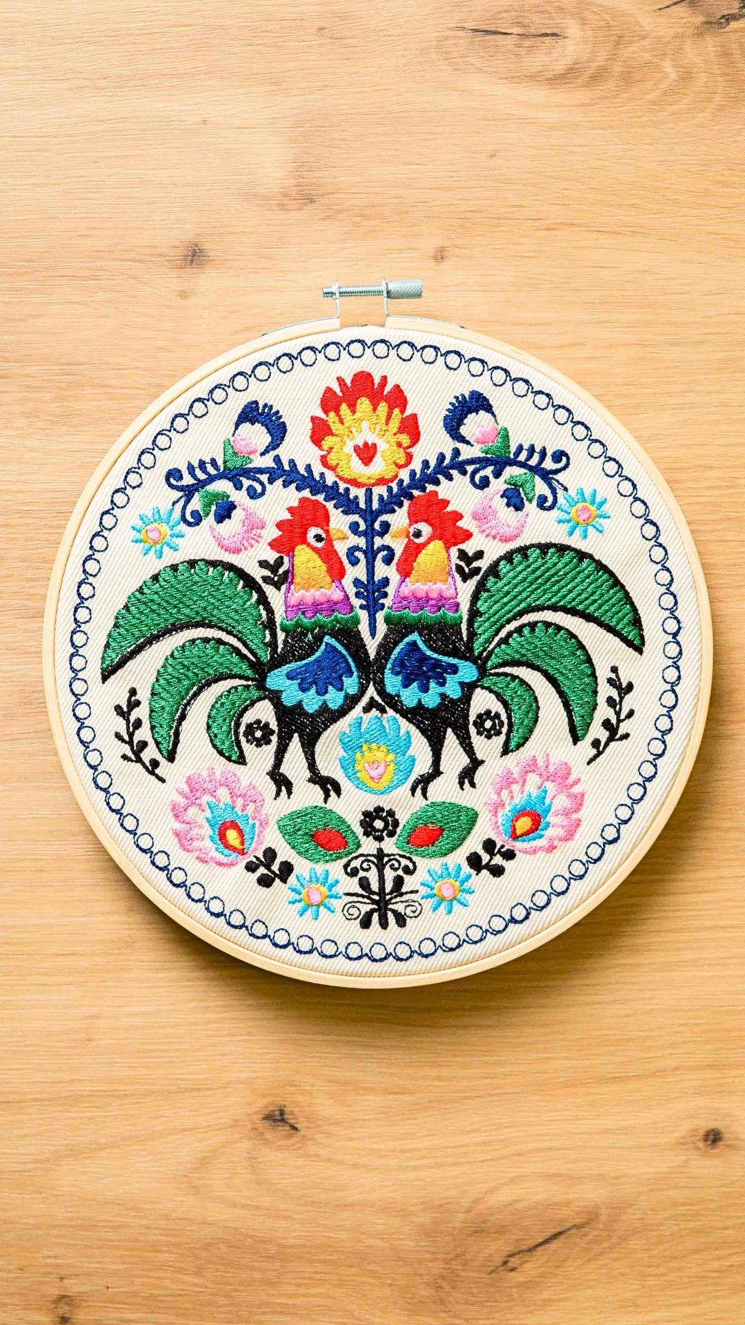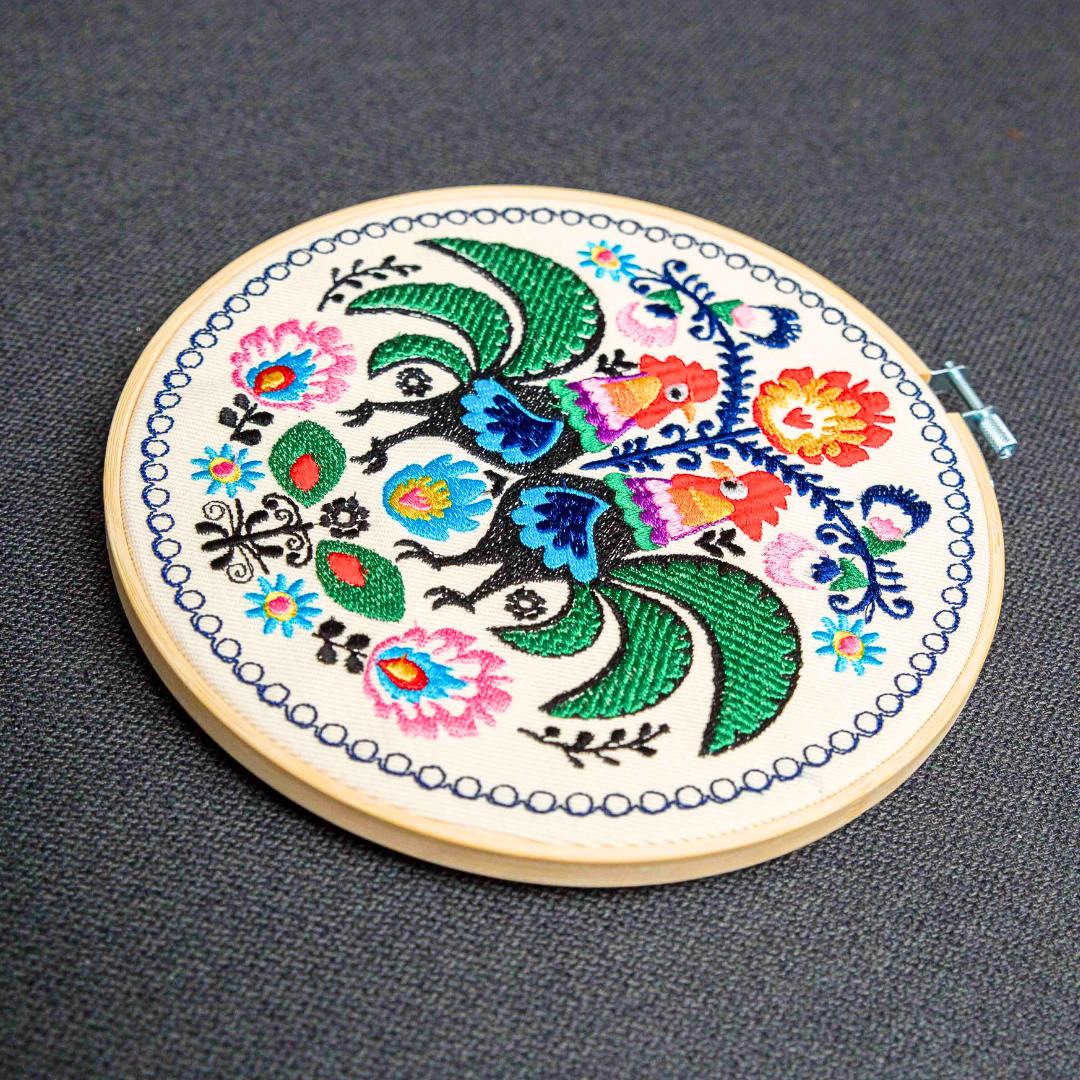 Napisz pierwszą opinię o „Koguty łowickie – ecru, haft w tamborku 20 cm”