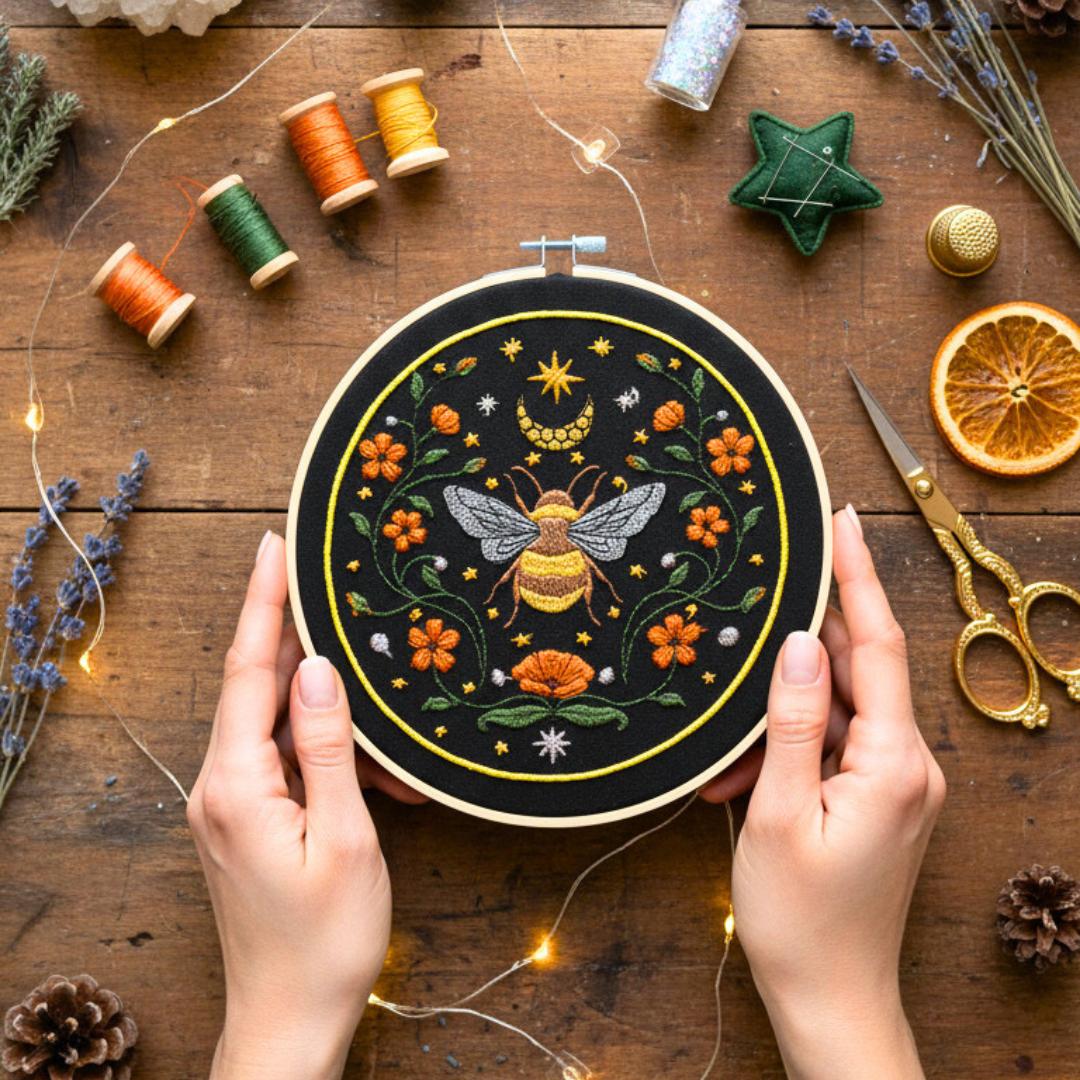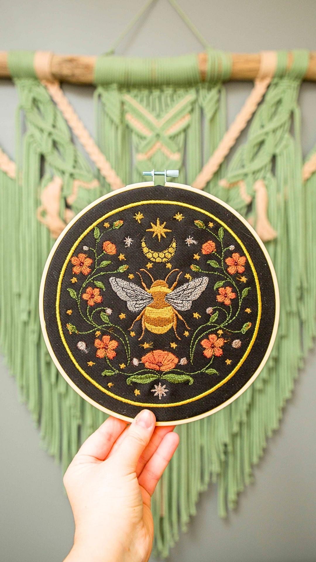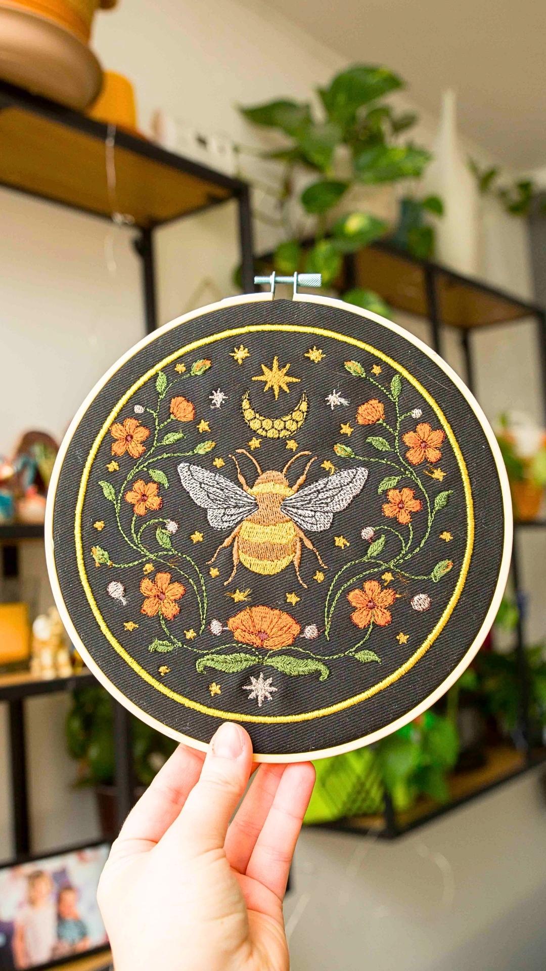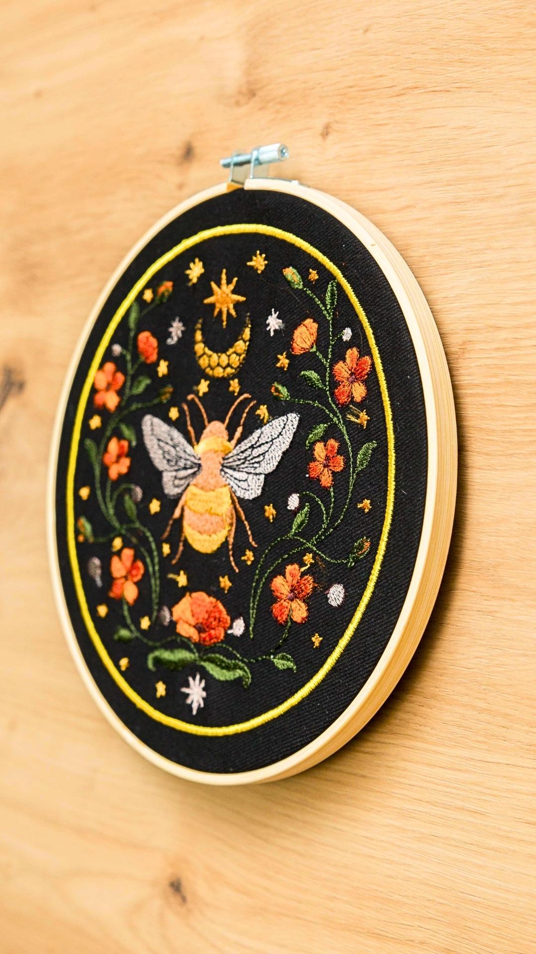 Pszczoła wśród kwiatów i księżyc 🐝🌙🌟