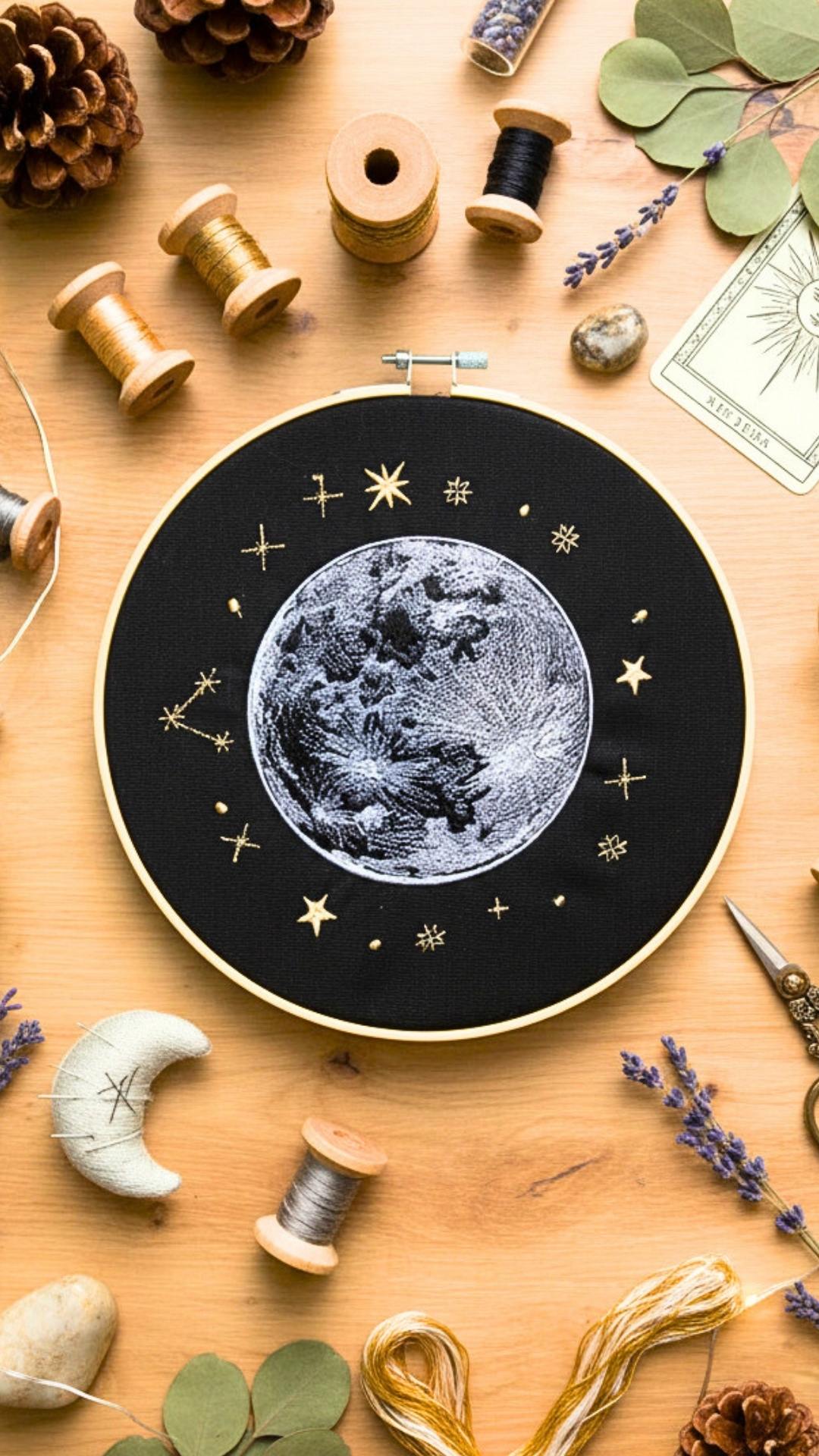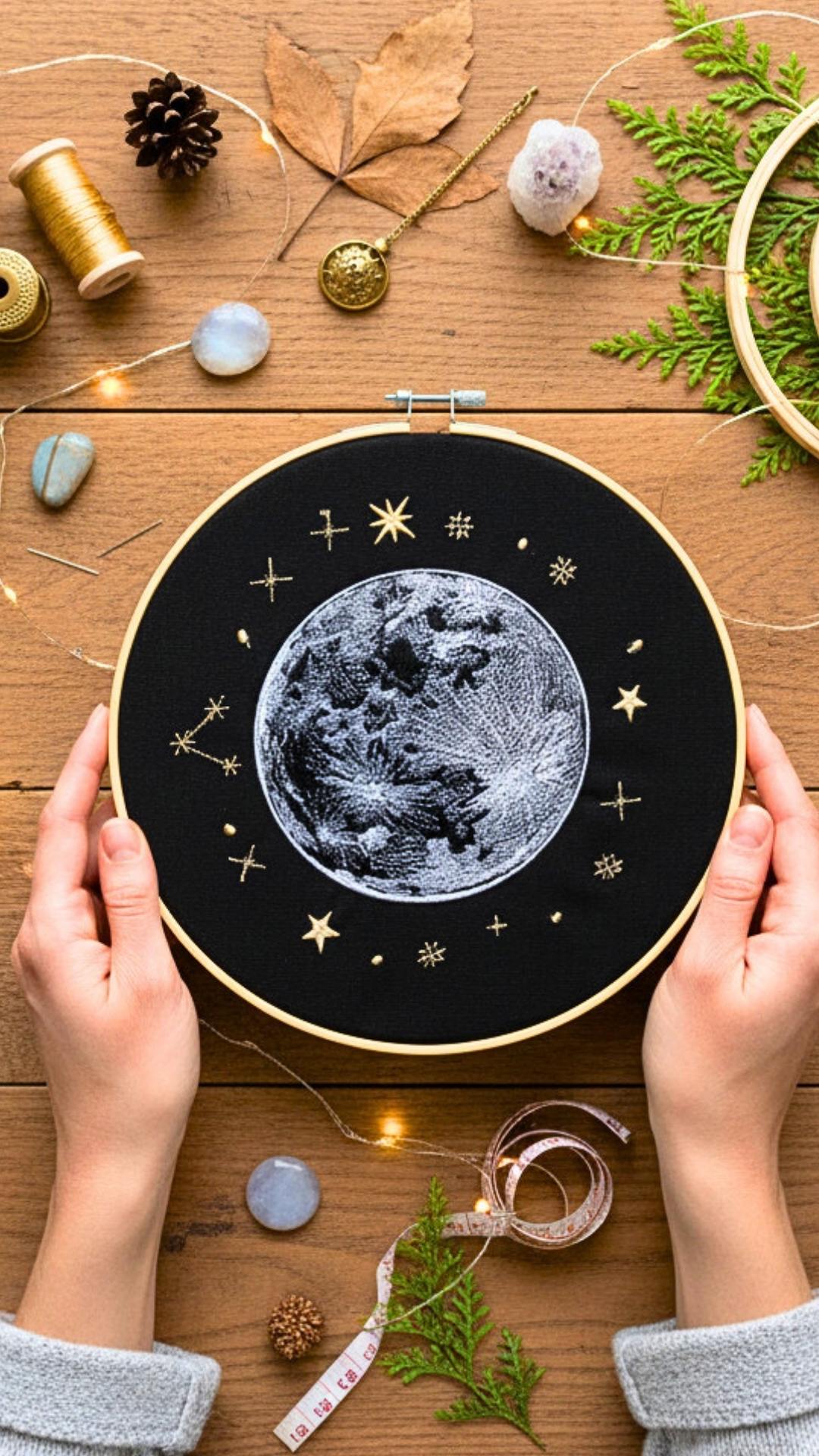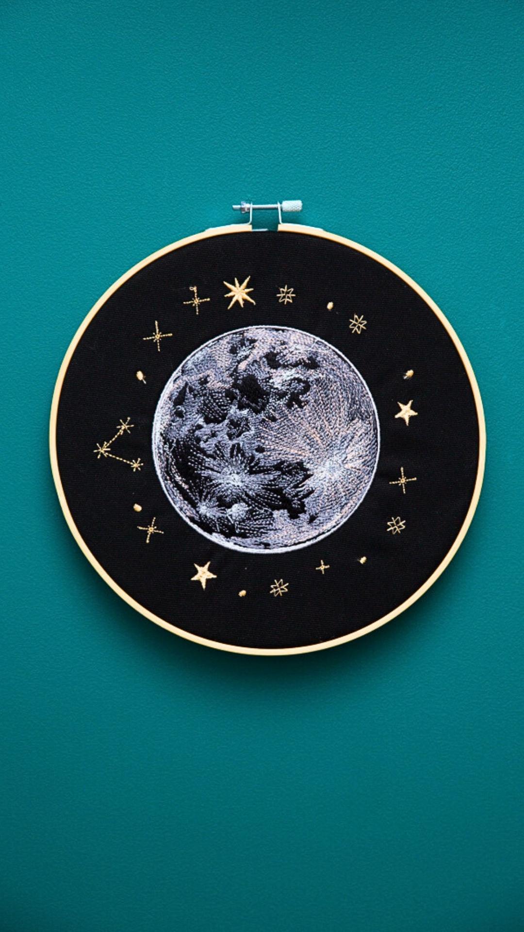 Pełnia księżyca – haft w tamborku 24 cm