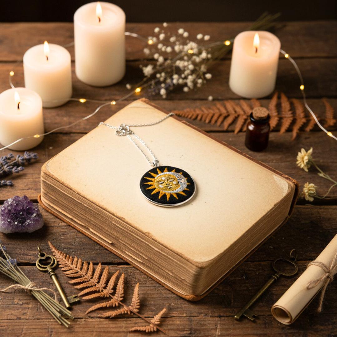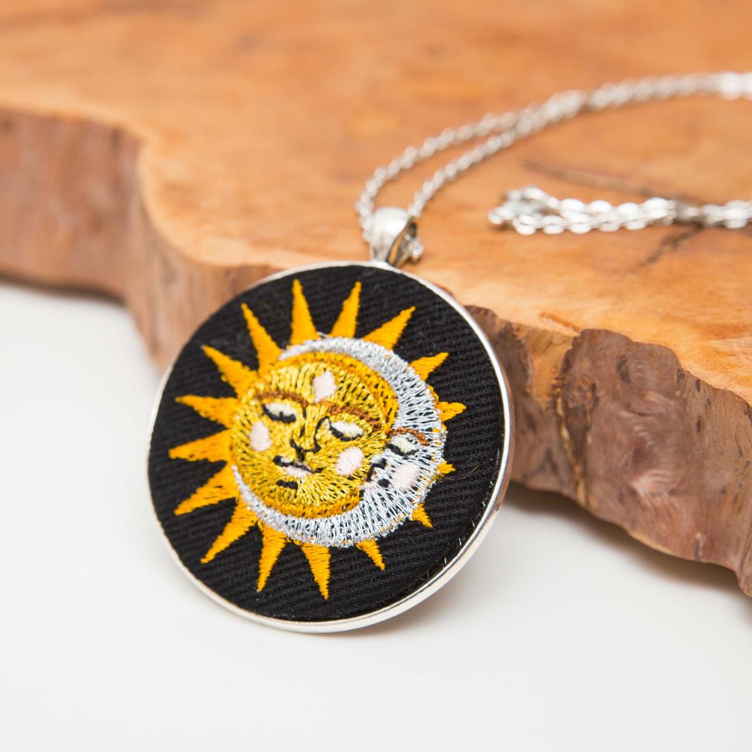 Słońce i księżyc – haftowany wisiorek 5 cm